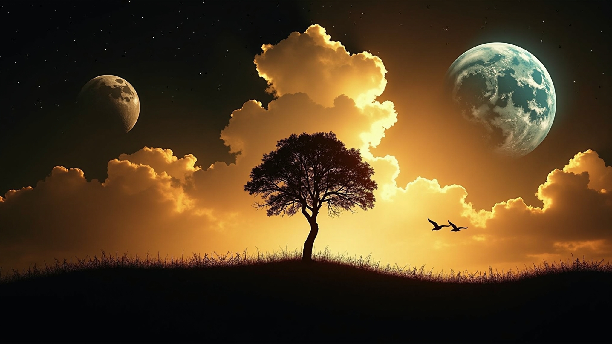 Погрузитесь в завораживающий мир космических просторов с нашей уникальной коллекцией обоев! Здесь вас ждут самые потрясающие изображения бескрайних галактик, загадочных туманностей, далёких звёздных скоплений, величественных планет и нашего серебристого спутника — Луны. Каждые обои — это окно в бесконечность, которое превратит ваш рабочий стол в портал к звёздам. Установите себе широкоформатные космические шедевры в высочайшем качестве: яркие фотографии Хаббла, художественные интерпретации далёких миров, реалистичные изображения планет Солнечной системы и фантастические пейзажи неизведанных галактик.